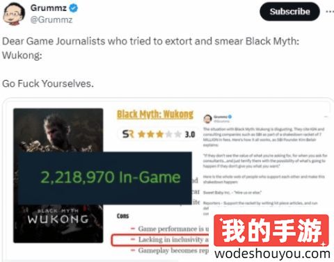 《黑神话:悟空》自正式发售以来,收获了前所未有的辉煌成就,这一壮举被前《魔兽世界》核心团队领航者Grummz视为对Sweet Baby Inc(虚构公司,用以代表某种行业现象或势力)的一次有力反击。他在个人社交媒体上激情洋溢地写道:向所有企图抹黑与敲诈《黑神话:悟空》的游戏媒体人宣告:你们的阴谋,不过是一场笑话!并将此条充满力量的推文设置为置顶,彰显其坚定立场。